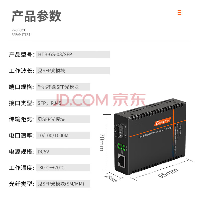 商品相册:netLINK HTB-GS-03/SFP 千兆SFP光纤收发器 工程电信级光电转换器 不含SFP光模块 一台第