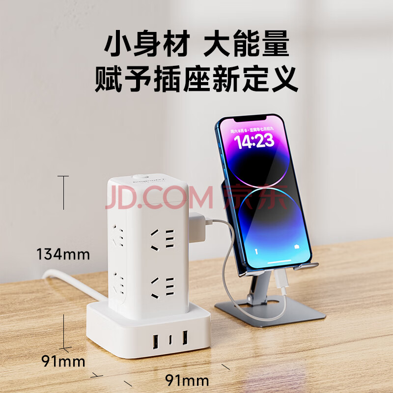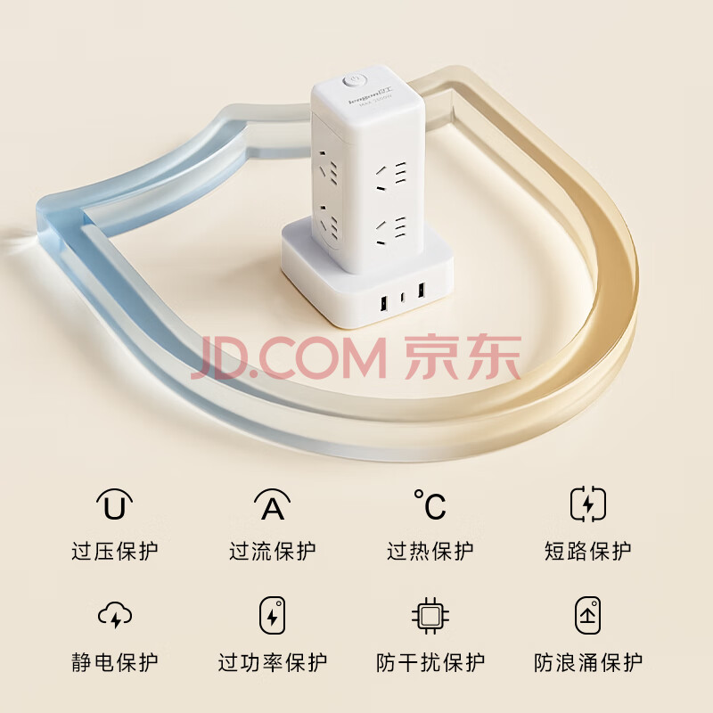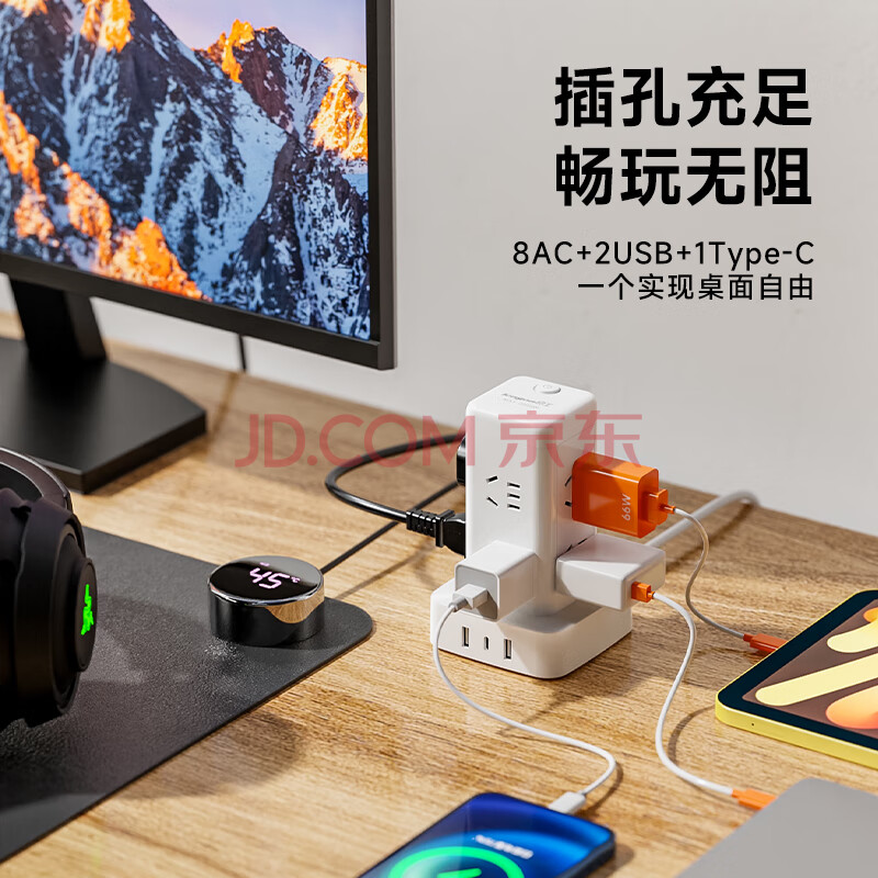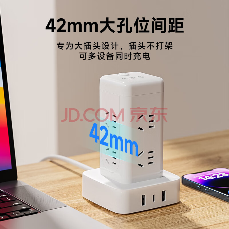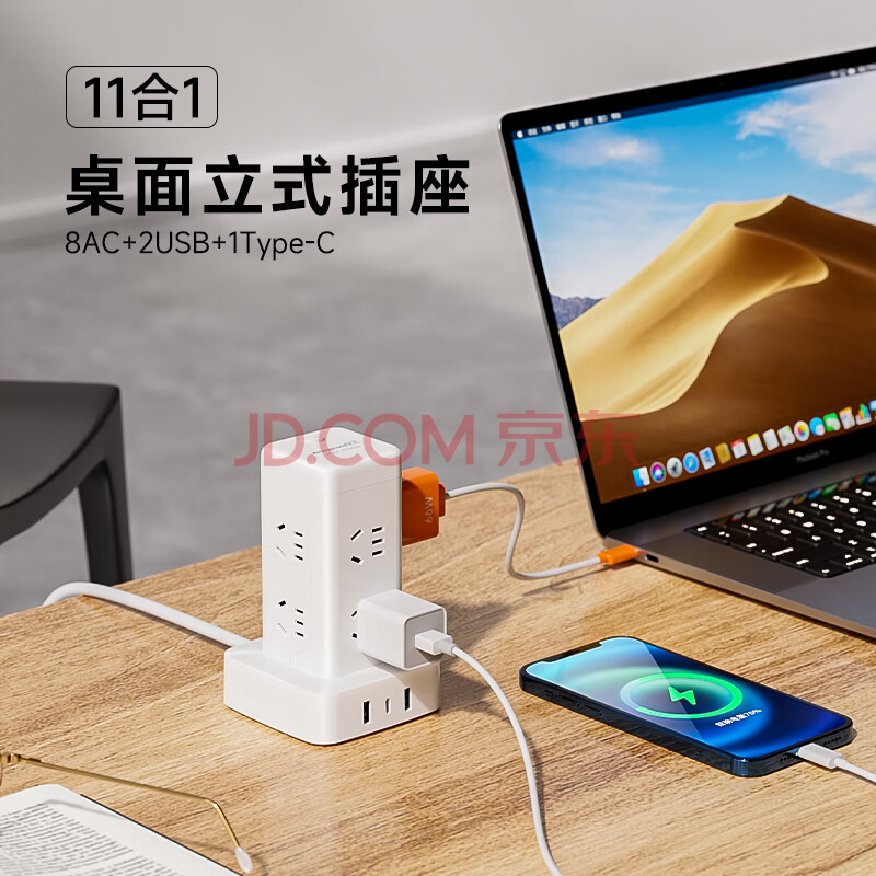 商品相册:良工(lengon)魔方USB立式插座/插排 8插位1.7米 过载保护 Type-c插板/排插/插线板/接线板/拖线板 U108U-1.7白第