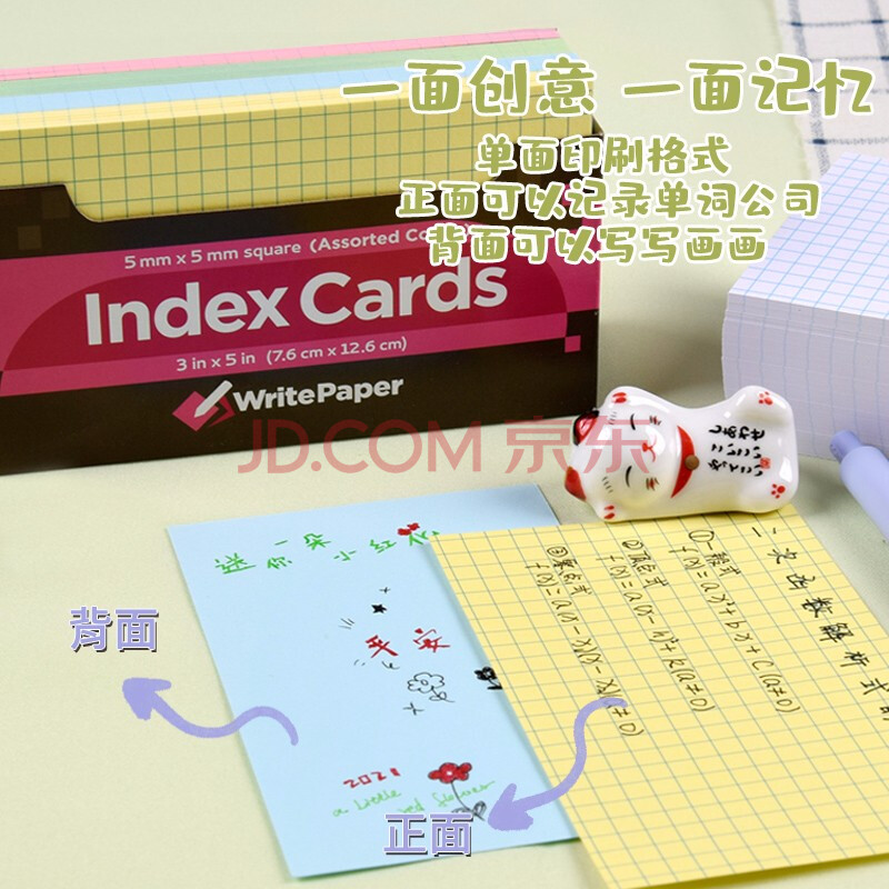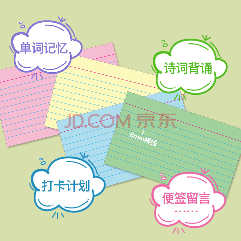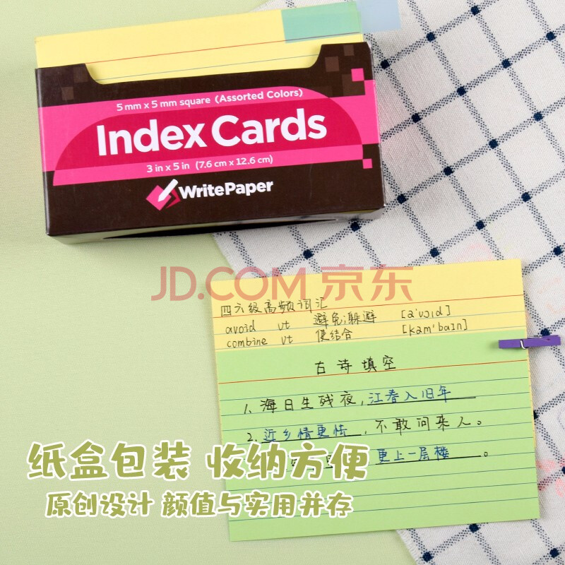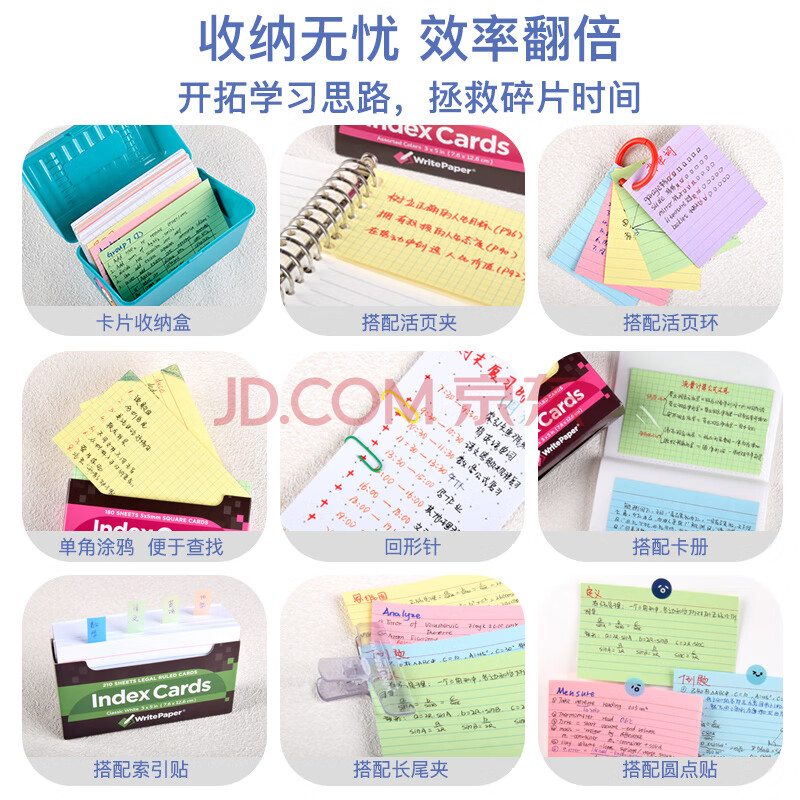 商品相册:凯萨(KAISA)【全网热卖】四色索引卡180张IndexCards分类标签纸无粘性办公卡片纸便签本彩色单词卡便利签第