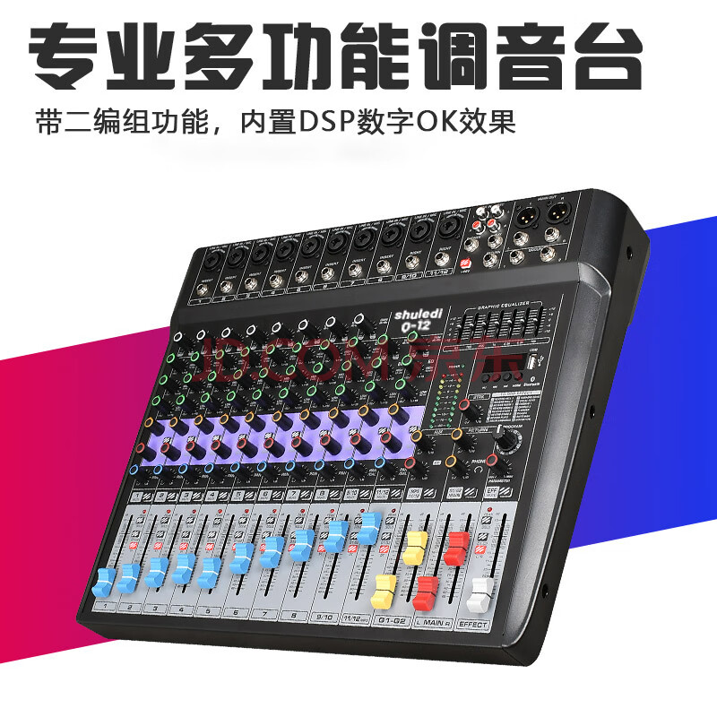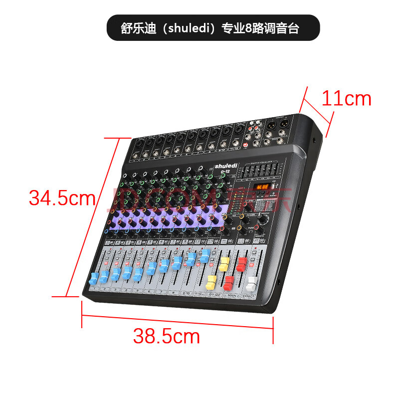 商品相册:舒乐迪(shuledi)Q-12国产化专业会议调音台8路 两编组一辅助输出 舞台婚庆酒店教学KTV音响U盘蓝牙混响均衡第
