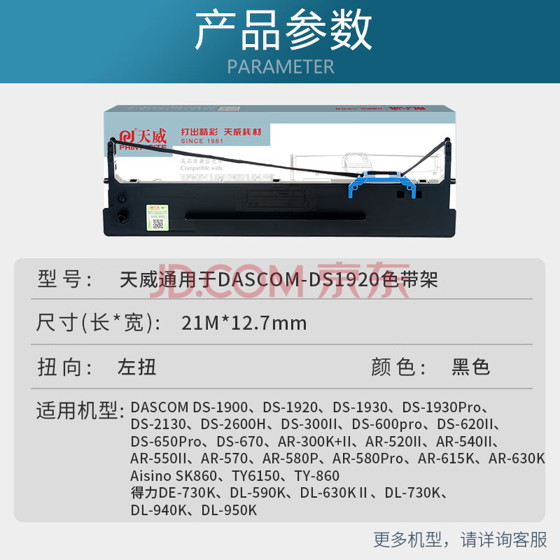 商品相册:天威80D-8色带得实DS1920色带架适用DASCOM DS1920 1930 1930PRO AR-570 AR-550II SK860 得力730K第