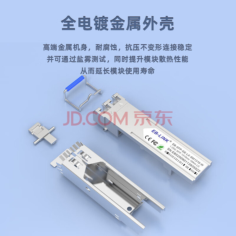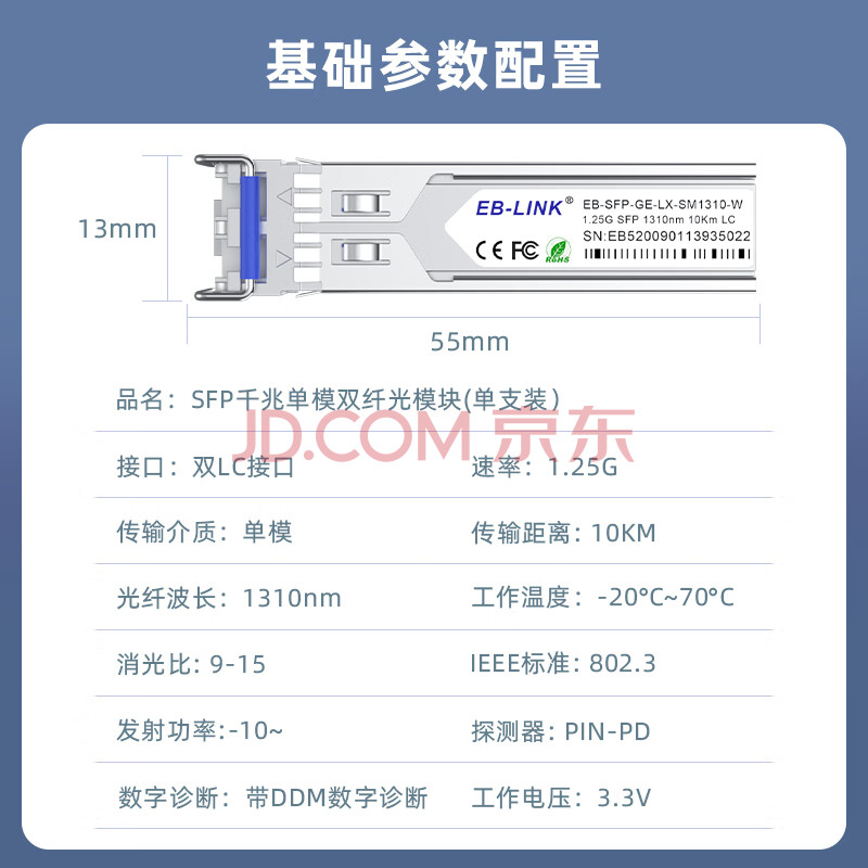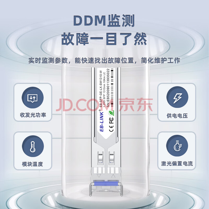 商品相册:EB-LINK EB-SFP-GE-LX-SM1310 SFP光模块1.25G带DDM千兆单模双纤10公里兼容华为/锐捷/中兴/海康第