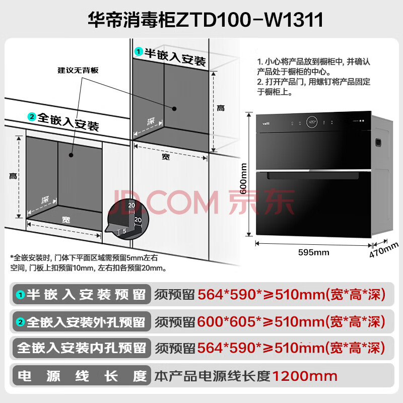 商品相册:华帝(VATTI)ZTD100-W1311臭氧紫外线双重消毒100L大容量红外线烘干抑菌一体式碗架多重安全防护消毒碗柜第