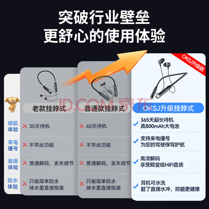 商品相册:OKSJ蓝牙耳机运动颈挂式无线挂脖式降噪 适用于华为/小米手机防水跑步长续航5.3ENC游戏 第