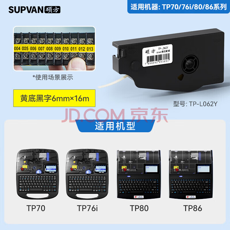 商品相册:硕方线号机贴纸TP70/TP76/TP80/TP86打号机打码机标签机打印不干胶贴纸 6mm黄色TP-L062Y第