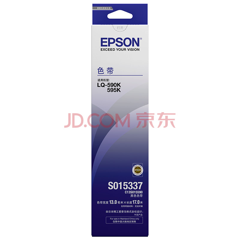 商品相册:爱普生 C13S015590原装色带(色带架含芯)黑色单支装(适用于 LQ-590K/595K) 色带架:13mm*17m第