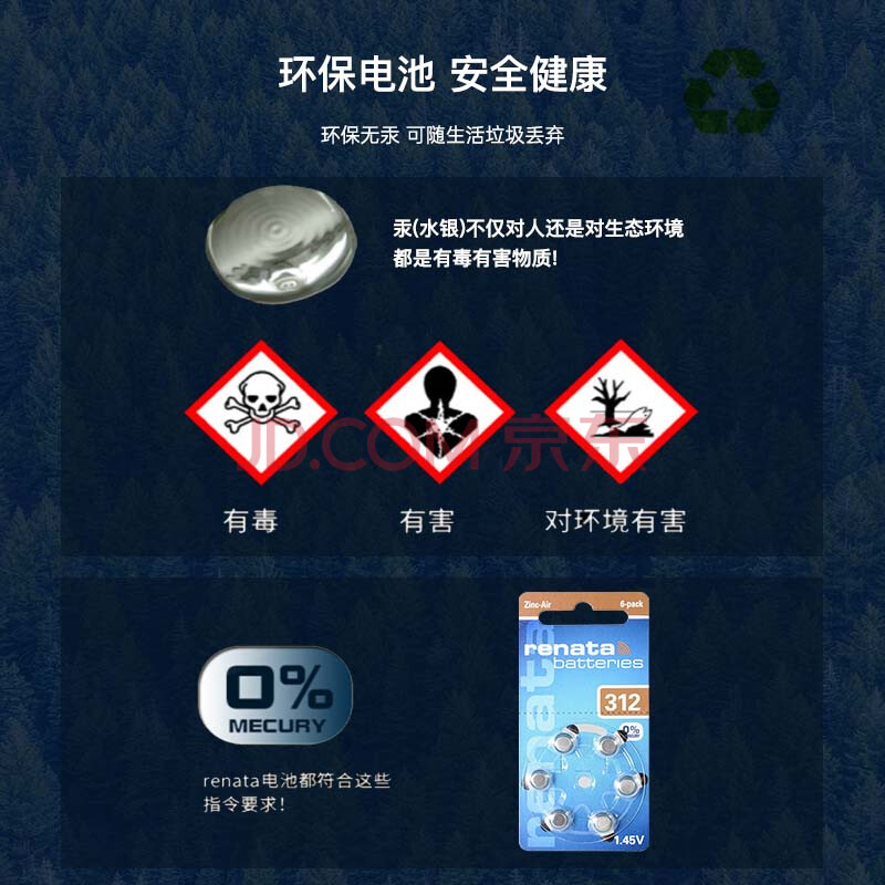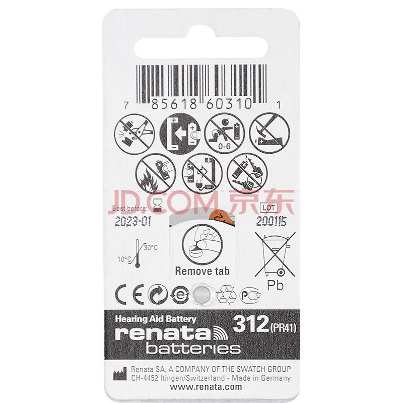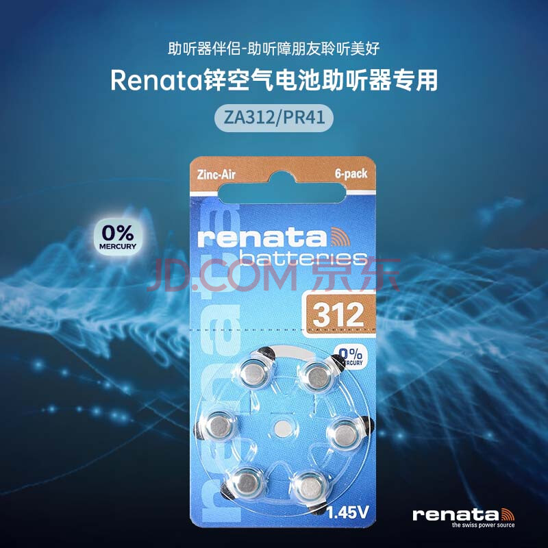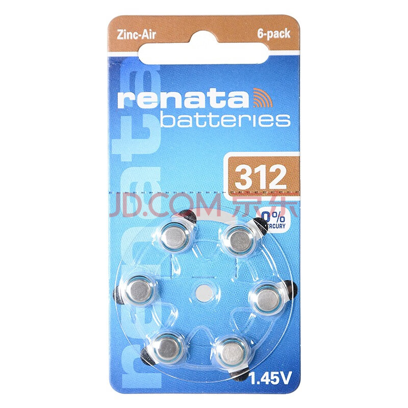 商品相册:瑞纳达(RENATA)ZA312/PR41助听器电池 1.45V锌空气钮扣电池6粒适用峰力/西万博/西门子/瑞声达/奥迪康品牌第