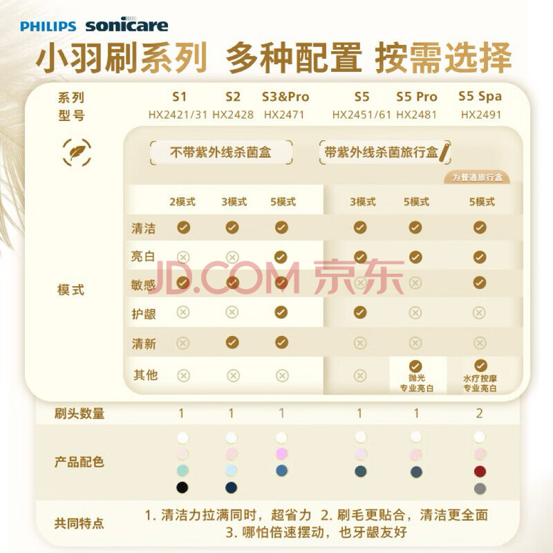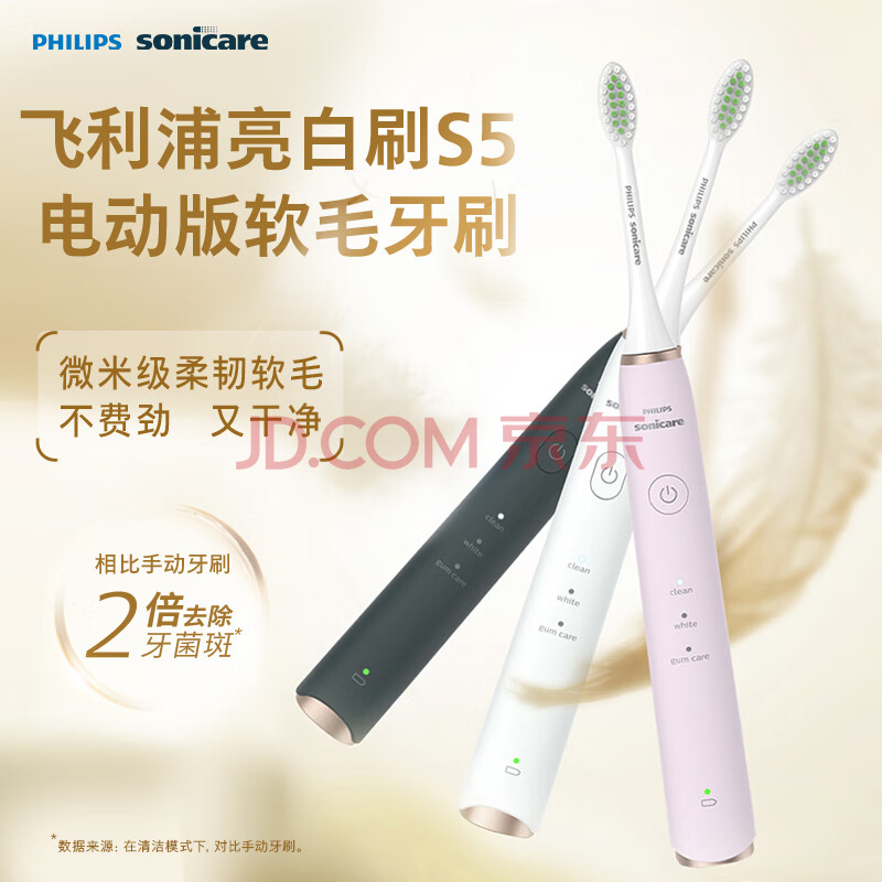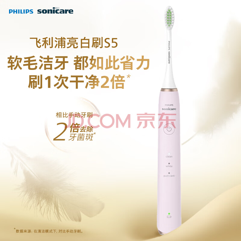 商品相册:飞利浦(PHILIPS)电动牙刷 S5 成人 情侣送男生/女友生日礼物 亮白刷 紫外线杀菌盒 HX2461蔷薇粉第