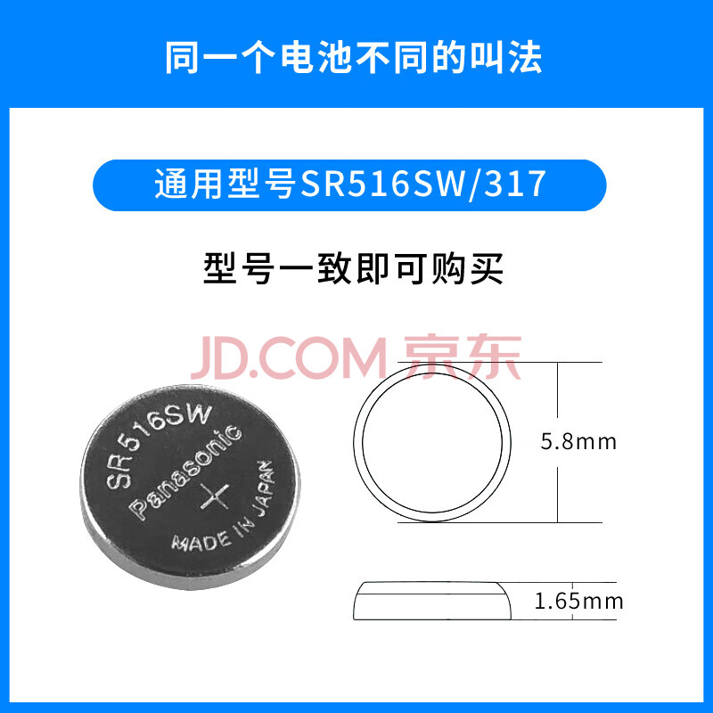 商品相册:松下(Panasonic)SR516SW 手表电池氧化银纽扣电池1.55V适用于石英手表电子手表等 317 日本进口5粒装第