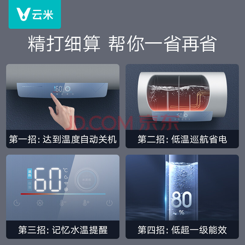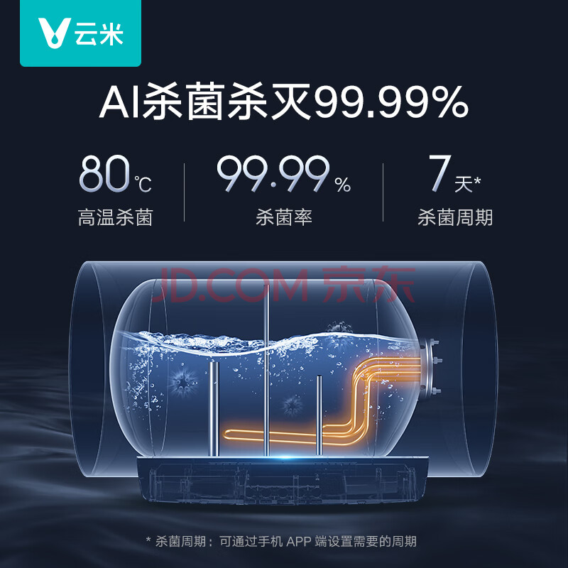 商品相册:云米(VIOMI)小蓝调智能电热水器50升3200W速热 超一级能效杀菌储水式家用VEW5027 第
