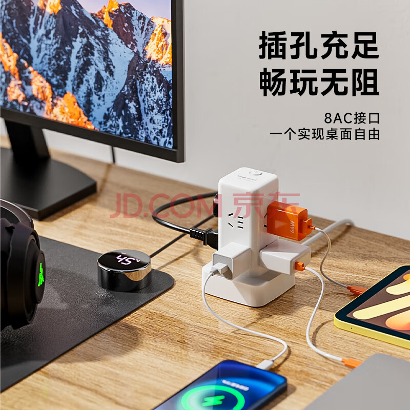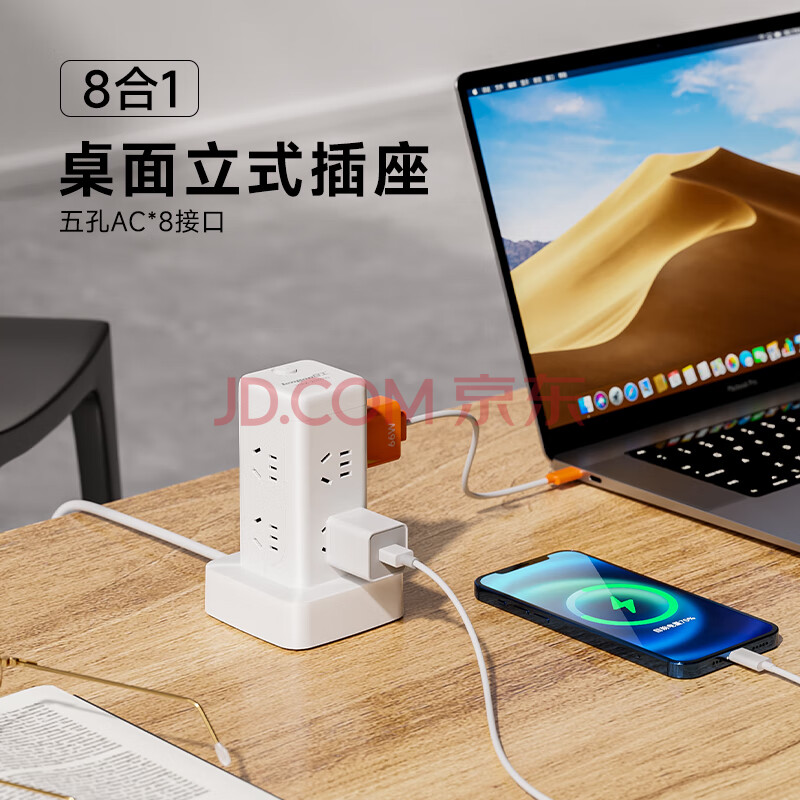 商品相册:良工(lengon)魔方立式插座/插排 总控2层8插位2.9米 插板/排插/插线板/接线板/拖线板/宿舍家用办公 U108-2.9白第