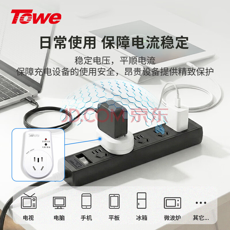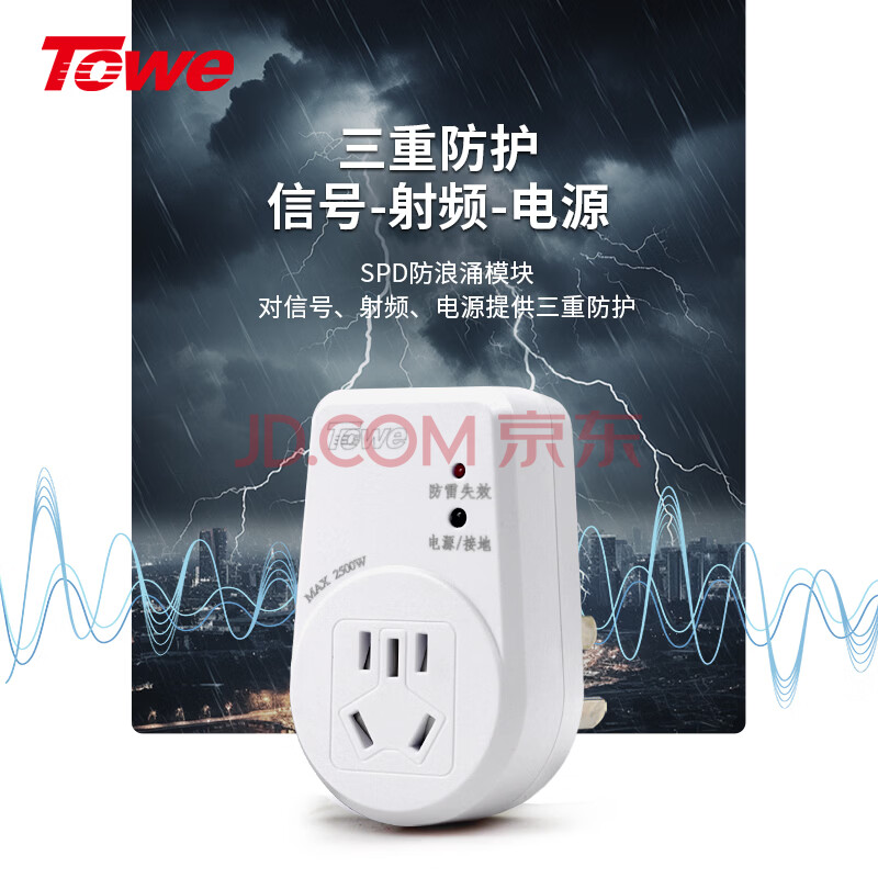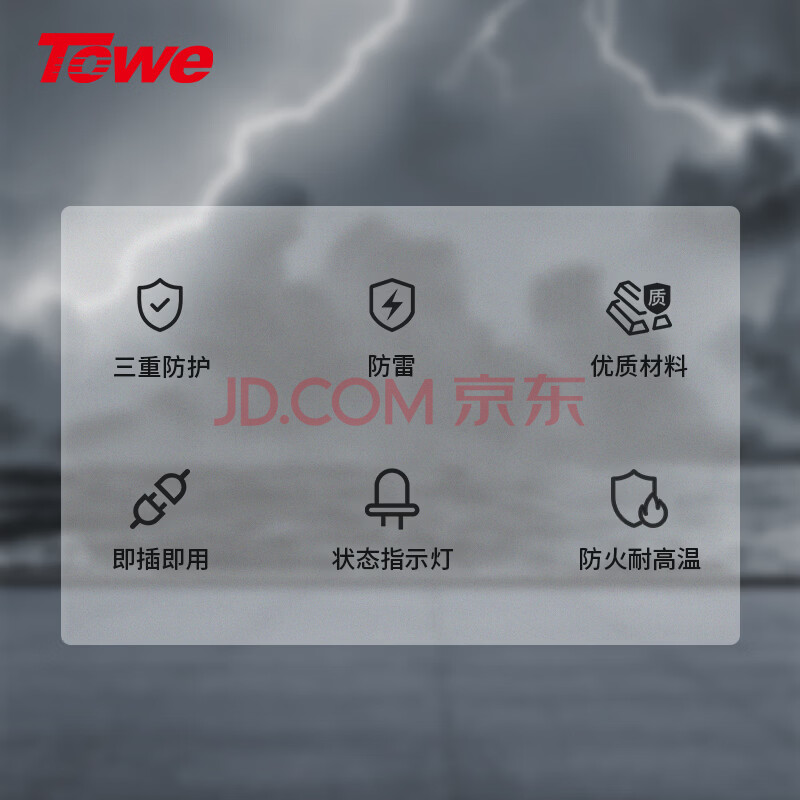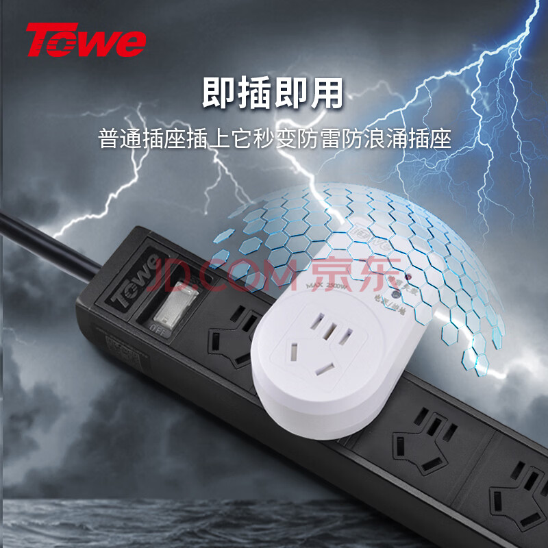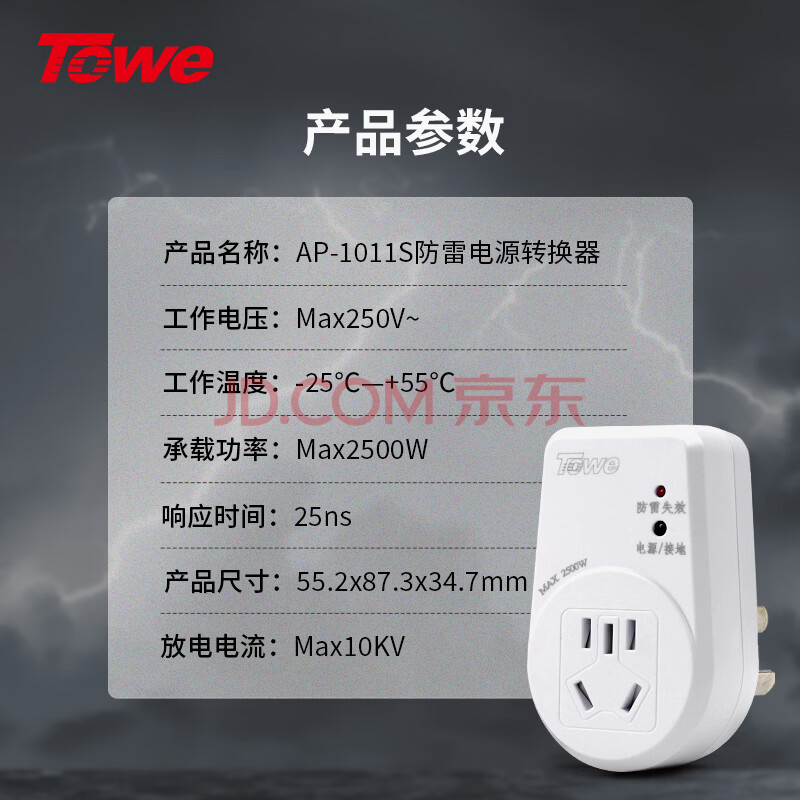 商品相册:TOWE同为家用办公专业防雷电源转换器 10a单路防浪涌插座国标插头AP-1011S 第