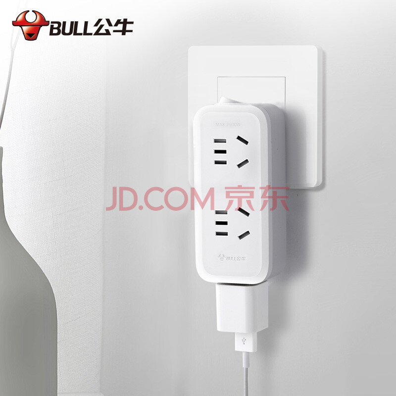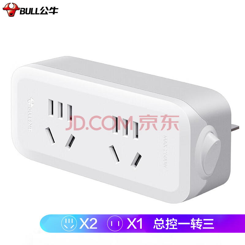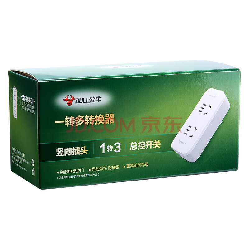 商品相册:公牛(BULL)插座扩展器一转三/一转多插座/转换插头/转换器/插排 适用卧室、厨房 3位总控竖向 GN-93120第