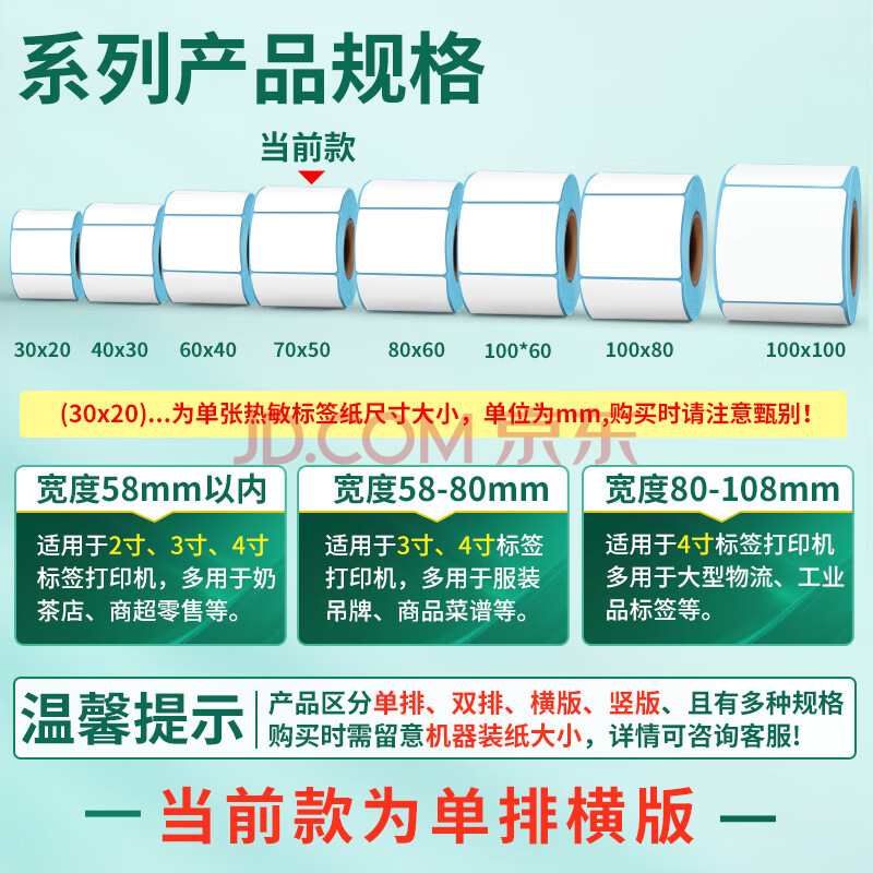 商品相册:天章 (TANGO)70x50mm 500张*12卷 新绿天章三防热敏标签纸食品服饰不干胶打印纸条码纸 可定制第