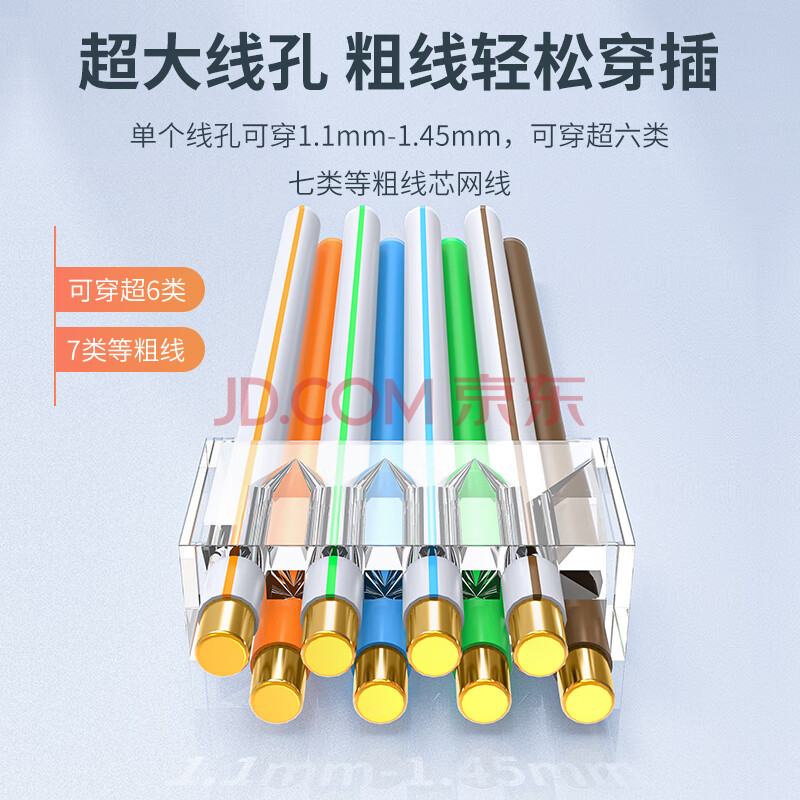 商品相册:胜为八类屏蔽水晶头 万兆两件式纯铜RJ45超六类七类50U镀金接头 带燕尾夹2个装WRC75002第
