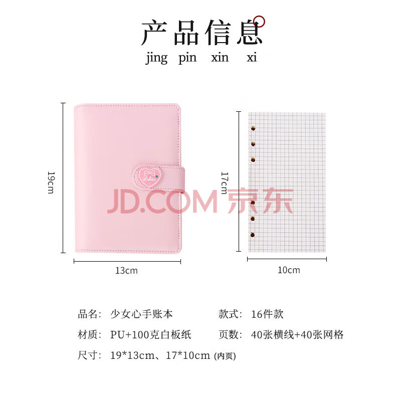 商品相册:TaTanice手账本套装节日礼物韩国ins可爱活页本网格纸胶带贴纸方格笔记本 16件套第