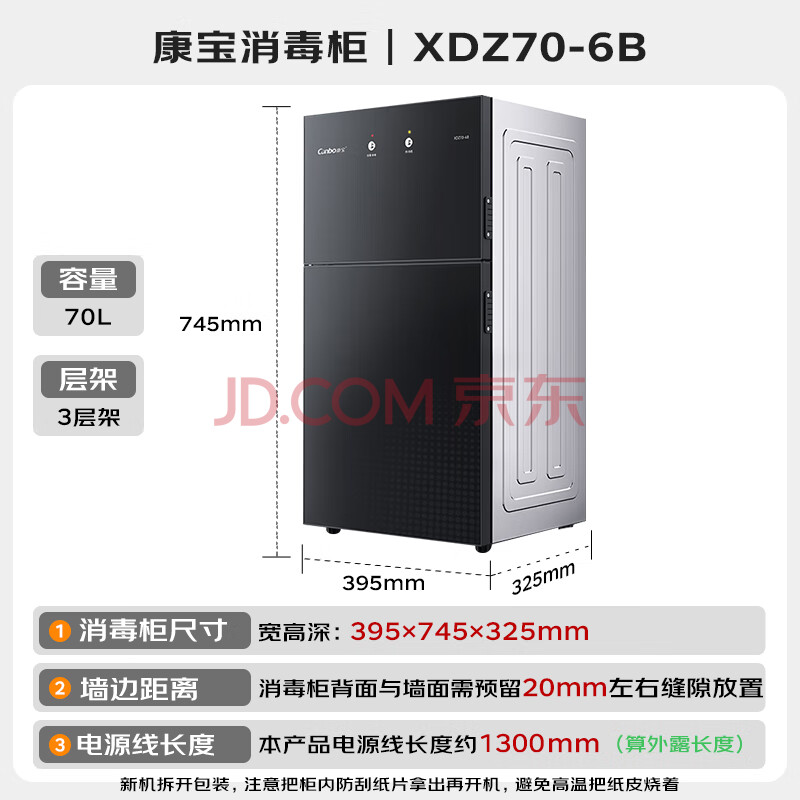 商品相册:康宝(Canbo)消毒柜家用立式小型二星中温高温消毒烘干厨房柜碗筷收纳柜双门消毒碗柜XDZ70-6B第