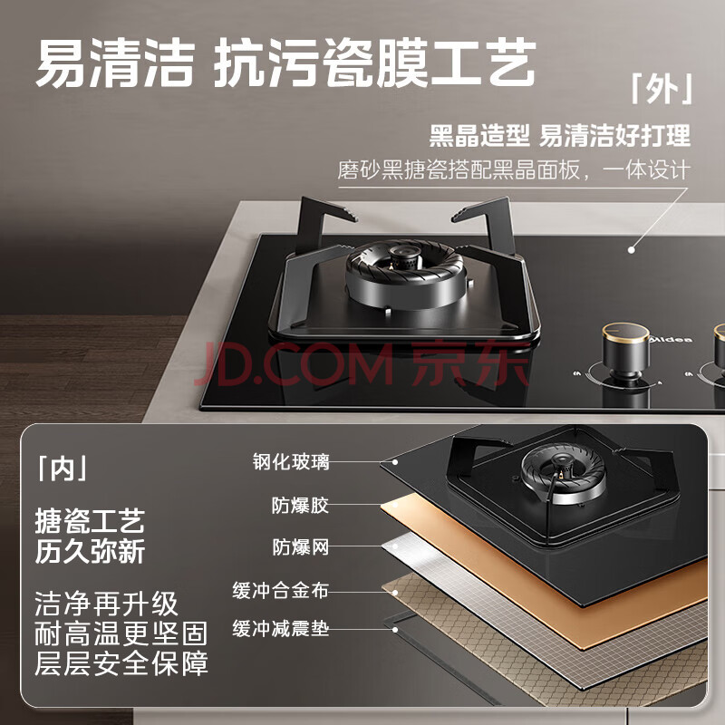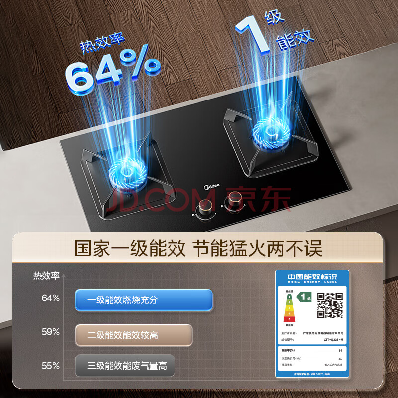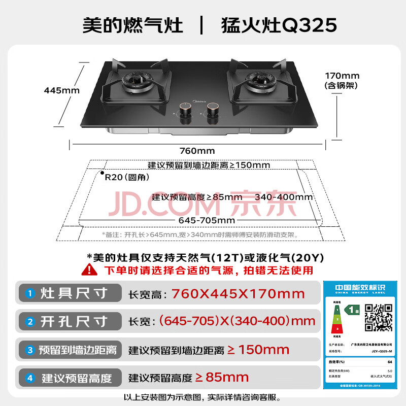 商品相册:美的(Midea)【液化气/煤气罐 】燃气灶双灶具 家用5.0kW台嵌两用 高热效 可调节底盘 Q325-M第