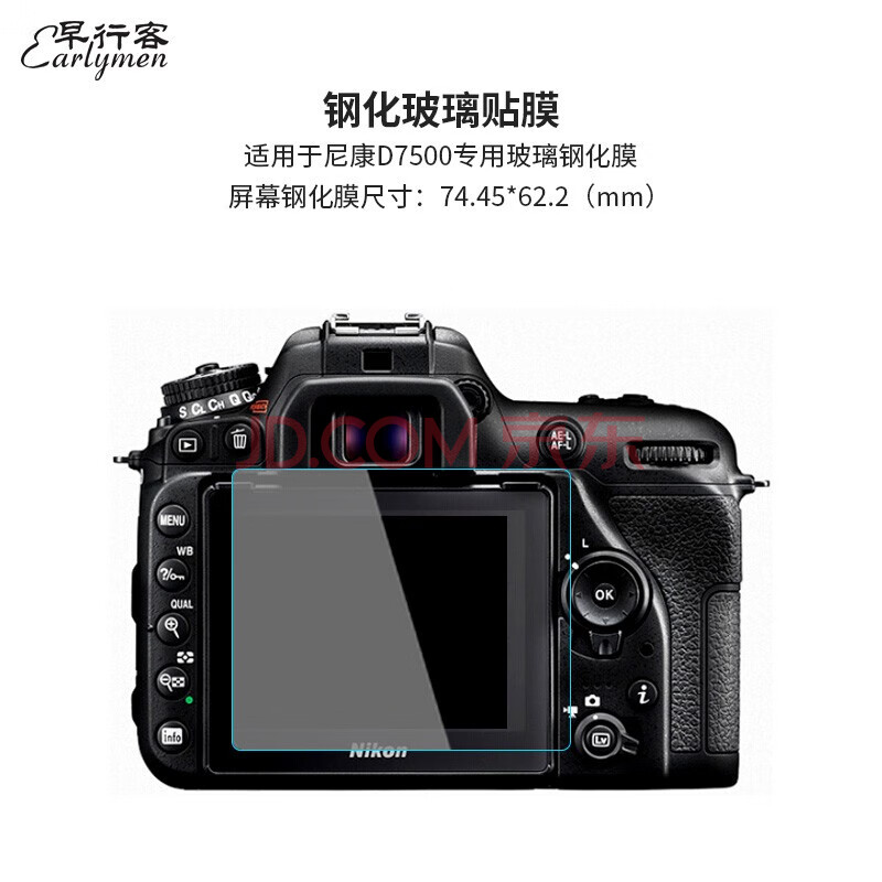 商品相册:早行客双片装 适用尼康D7500钢化膜 相机屏幕保护膜 贴膜 屏贴 玻璃钢化膜 单反配件 送肩屏膜第