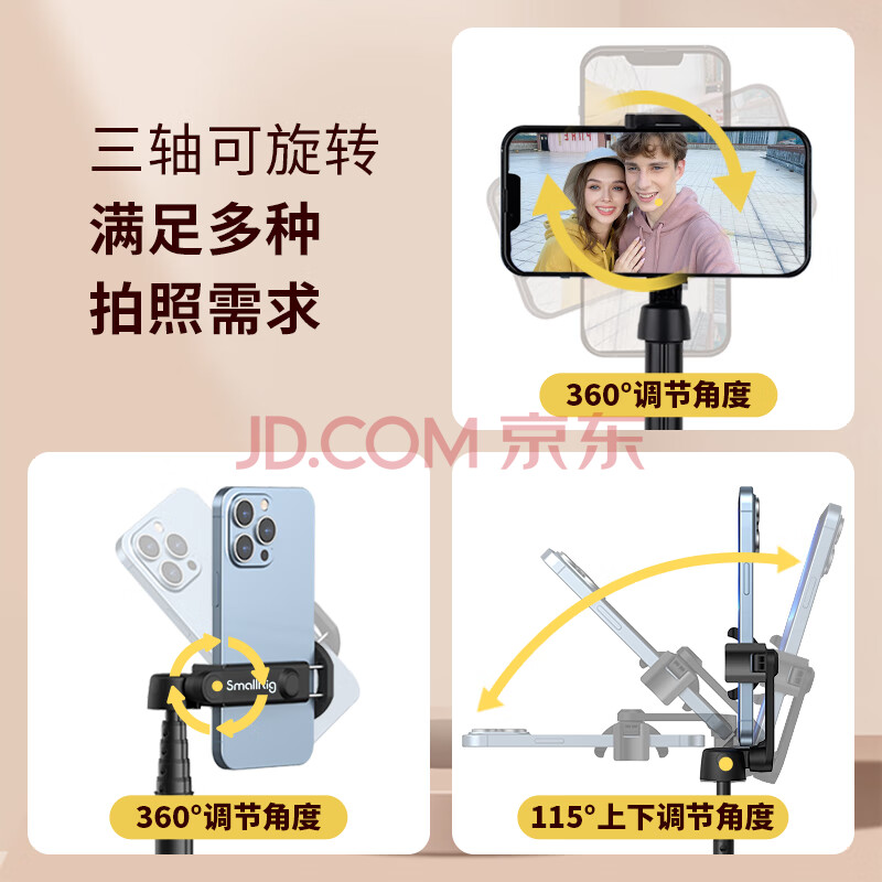 商品相册:斯莫格SmallRig 3375B 便携自拍杆三脚架 蓝牙遥控手机自拍照桌面直播可延长落地支架第