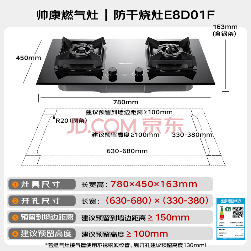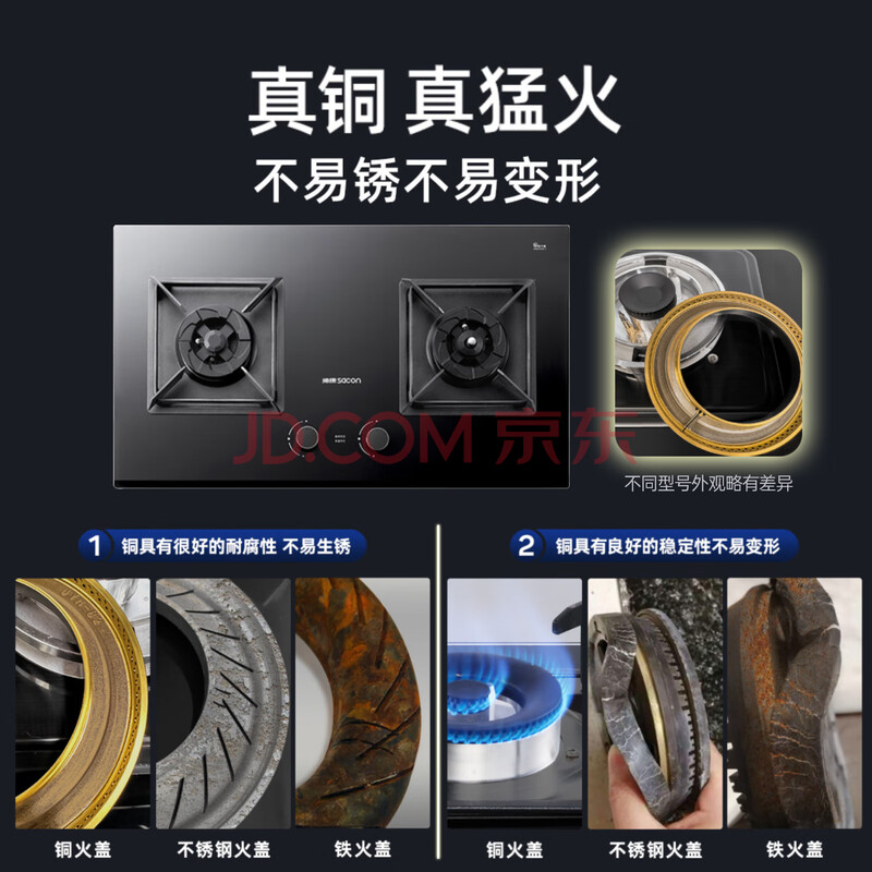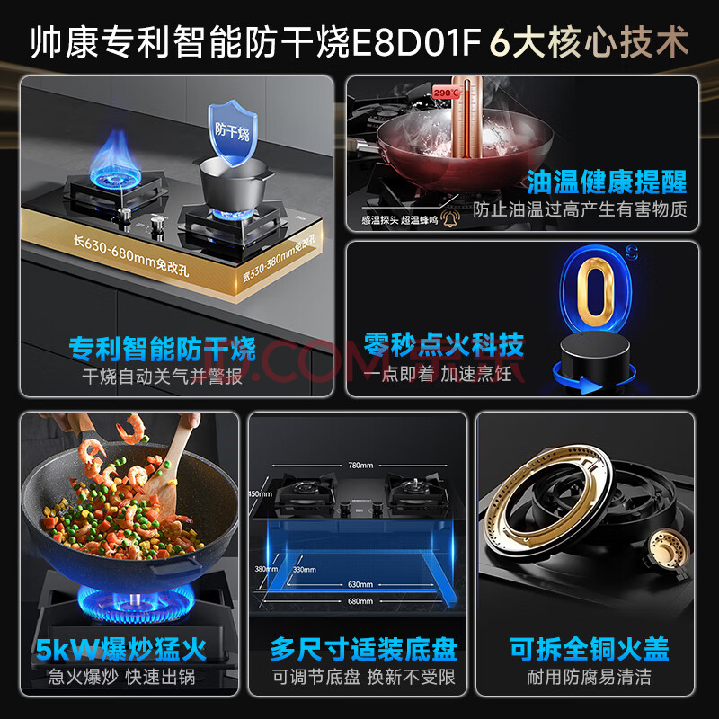 商品相册:帅康(Sacon)燃气灶双灶家用 5.0KW专利防干烧 零秒点火全铜火盖 可调节免扩孔底盘E8D01F天然气第