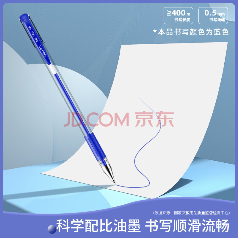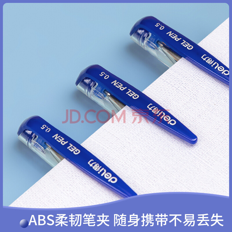 商品相册:得力(deli)经典拔帽中性笔 0.5mm子弹头签字笔水笔 蓝色12支/盒 P06600ES第