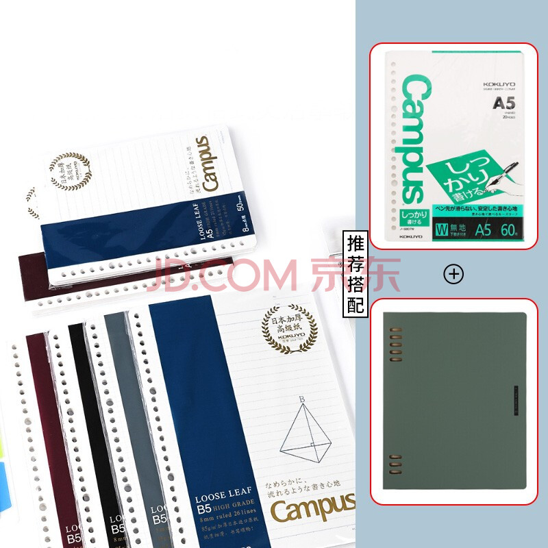 商品相册:国誉(KOKUYO)B5活页纸Campus活页本替芯笔记本子活页纸内页·高级型 8mm点线26行 50张1本 WCN-CLH1511第
