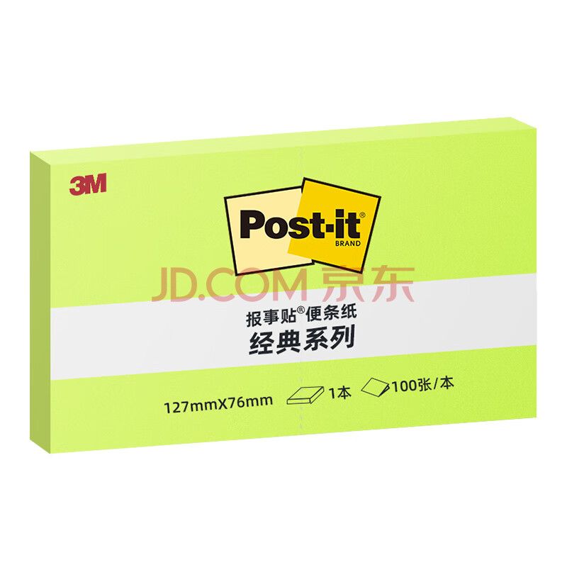 商品相册:3M 便利贴 2包大号 127×76mm 便条纸/报事贴/便签纸/便签本 办公用品 学习用品文具 655P-GR(绿色)第