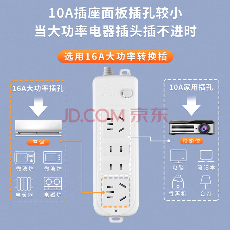 商品相册:吉顺10a转16a插座大功率排插排转换器插头空调热水器油汀电源延长线插线板转换头10安转16安+10 3米第