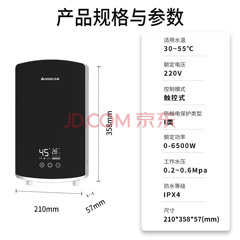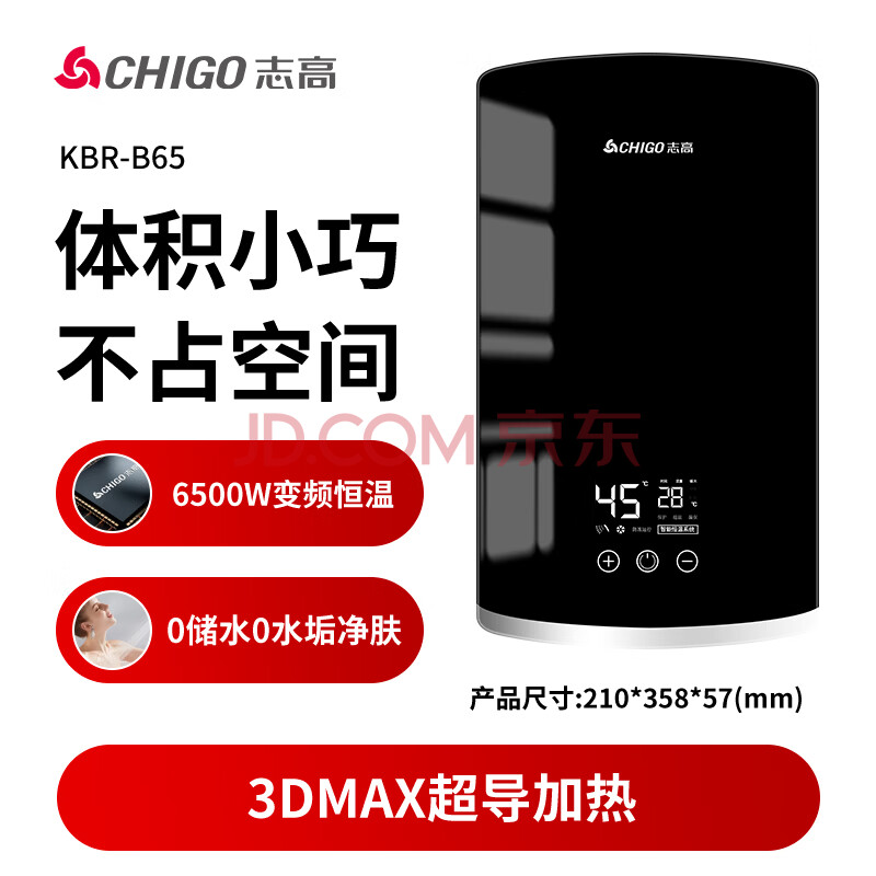 商品相册:志高(CHIGO)即热式电热水器小厨宝6500W恒温出租房家用洗澡水龙头KBR-B65黑色第
