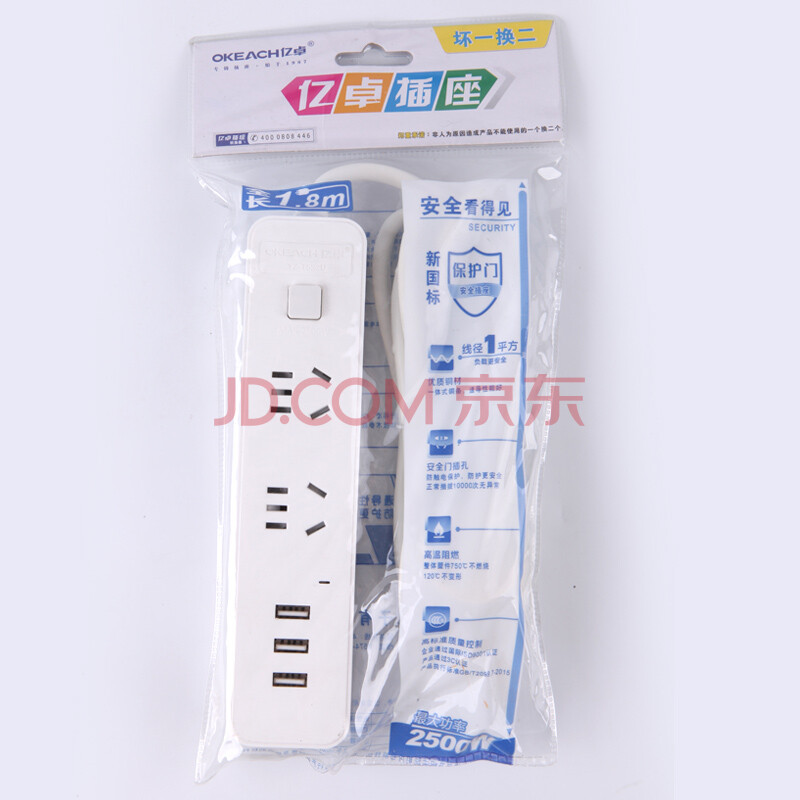 商品相册:亿卓(OKEACH)USB插座插排插线板排插开关插座转换插头USB插座YZ-T522U白色全长1.8米第