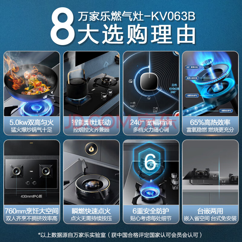 商品相册:万家乐燃气灶【小鲸喜KV063B】台嵌两用灶 5.0kw大火力嵌入式灶具钢化玻璃立体全进风天然气灶第