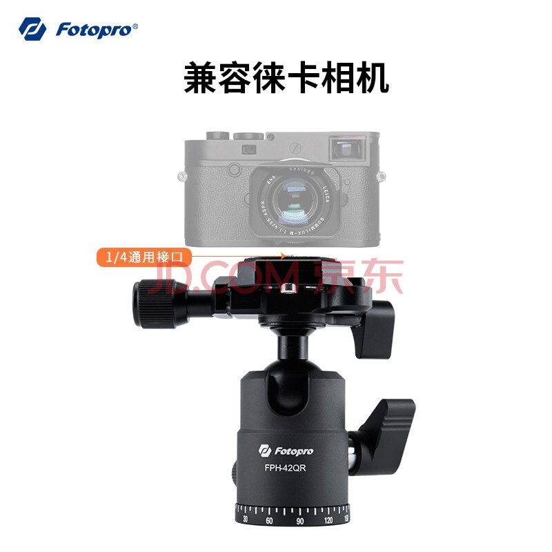 商品相册:富图宝 Fotopro 42QR 3/8螺丝接孔双全景360度旋转相机三脚架云台 兼容徕卡相机 哑黑色第