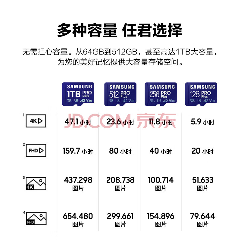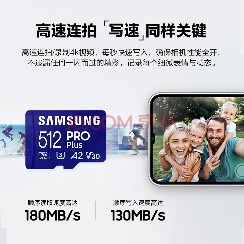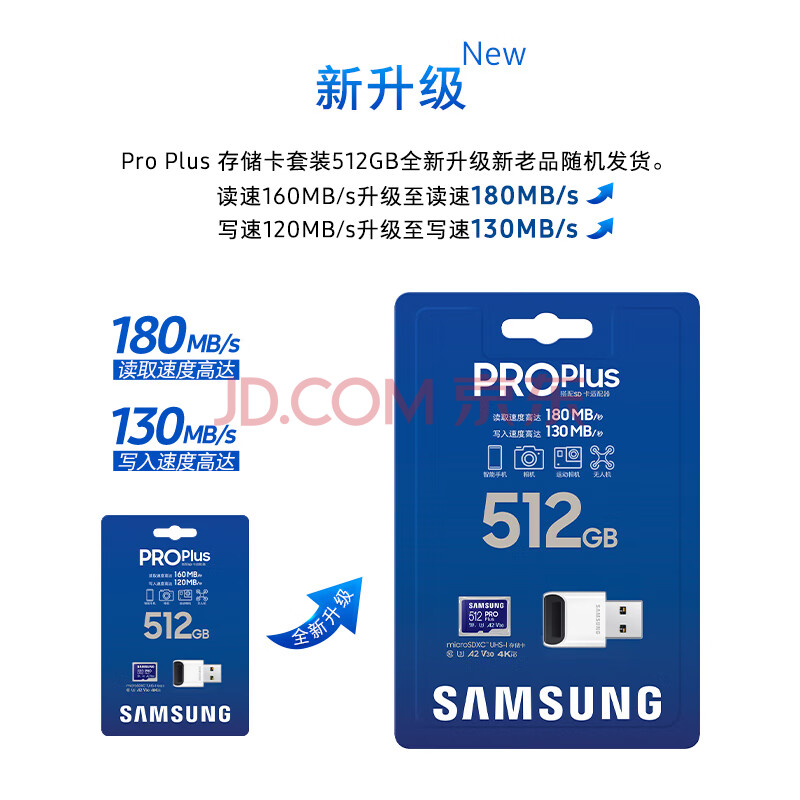 商品相册:三星(SAMSUNG)512GB TF(MicroSD)内存卡读卡器套装 高速PRO蓝卡 U3A2V30 兼容相机 读速180MB/s写速130MB/s第