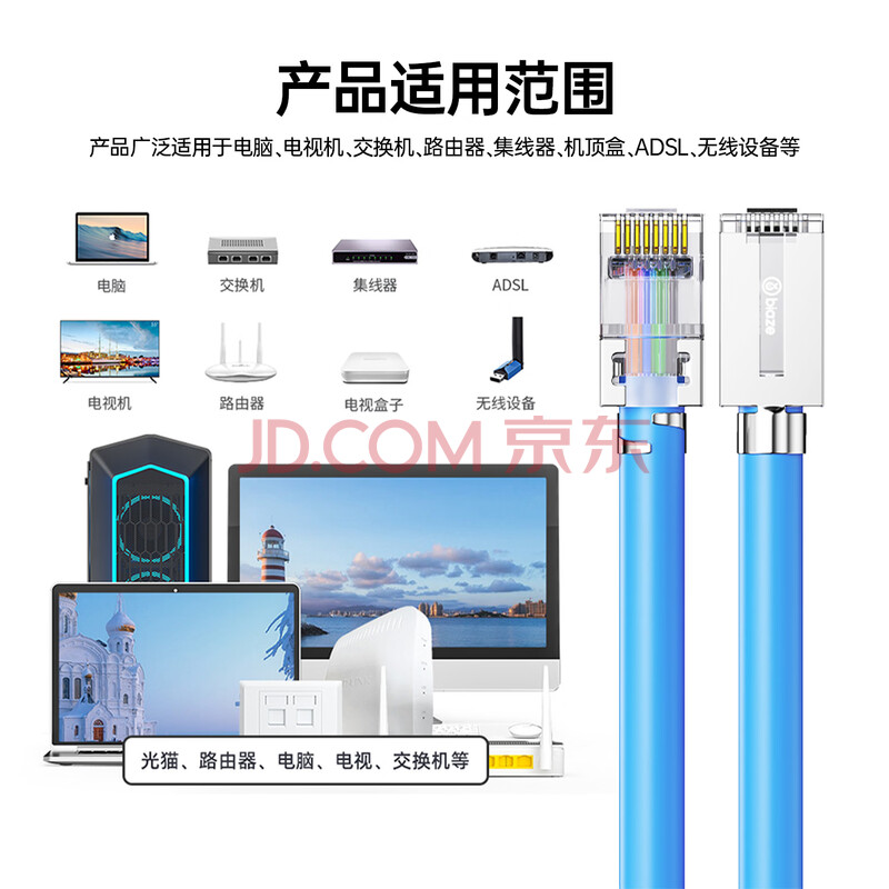 商品相册:毕亚兹 七类网线屏蔽水晶头 7类万兆网络接头 镀金工程级RJ45电脑网线连接器 CAT7两件式接头 5个第