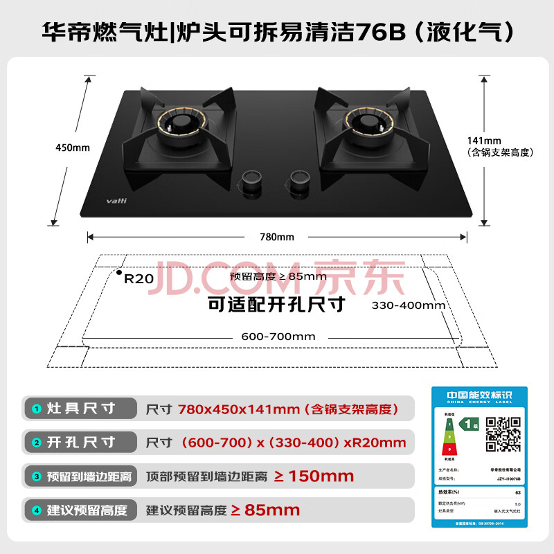 商品相册:华帝家用燃气灶一级能效煤气炉灶嵌入式5.0kW大火力猛火双灶台灶具i10076B【液化气商品】第