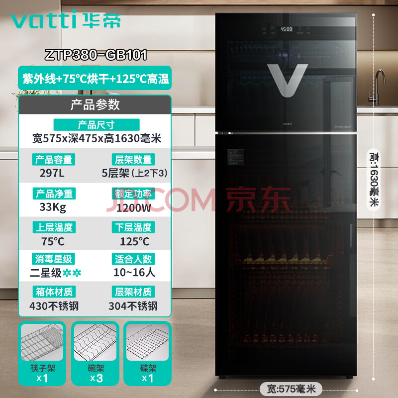 商品相册:华帝(VATTI)消毒柜家用立式大容量 高温二星级餐具碗筷消毒碗柜 ZTP380-GB101第