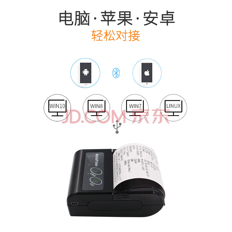 商品相册:优库便携式小票打印机 美团外卖送货单过磅单热敏58mm小票据机第