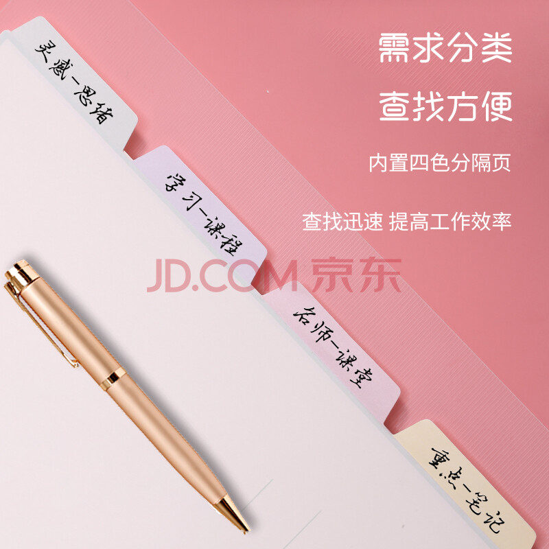 商品相册:文谷(Wengu)活页本60张笔记本子a4记事本初高中学生文具内芯可拆卸活页夹30孔横线四色索引分隔页蓝色B17-A4/C第