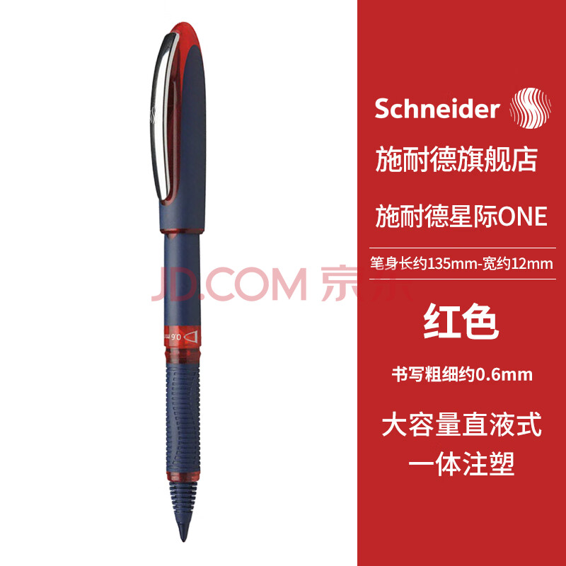 商品相册:施耐德(Schneider)直液式中性笔 大容量超顺滑签字笔办公学生考试用水笔开学必备用品0.6mm纤维尖星际-红183002第