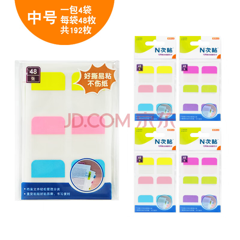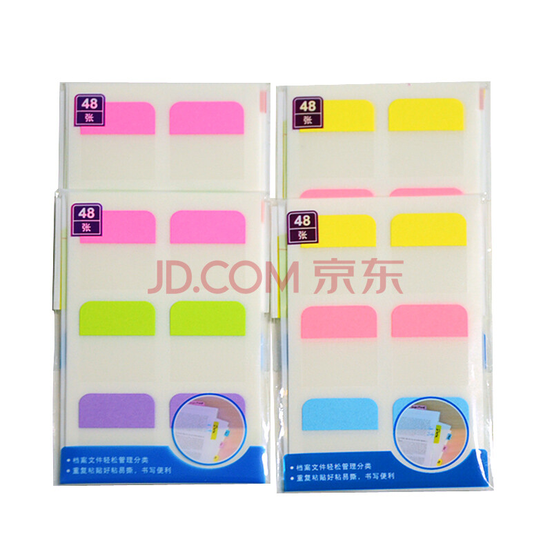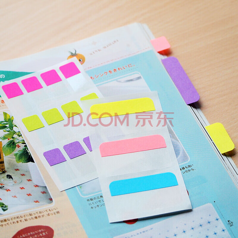 商品相册:N次贴(STICKN)荧光指示标签贴分类便签纸便利贴索引片28*25mm 纸标头易书写192枚6色 38008JD第