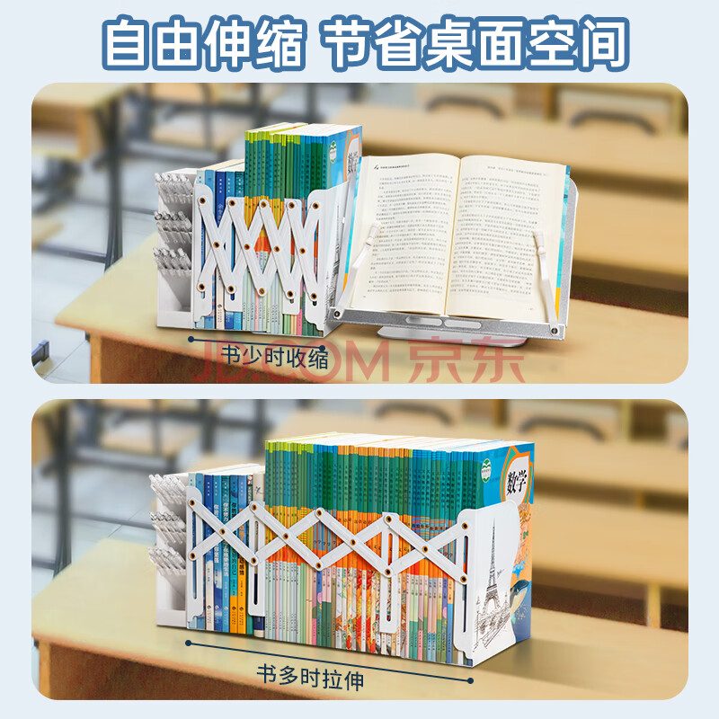 商品相册:南国书香可伸缩书立架桌面书本收纳架可折叠书架桌上置物架学生学习课桌收纳神器教室书夹书靠挡书板第