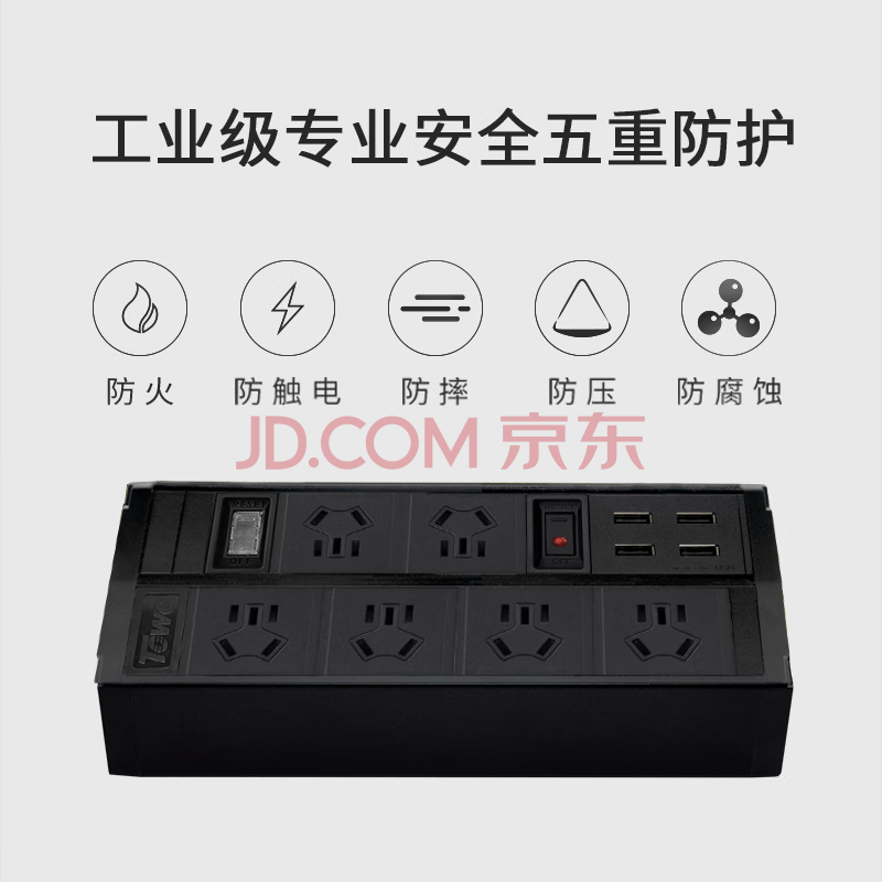 商品相册:TOWE同为防过充工业级多口4usb插座pdu插排插线板第