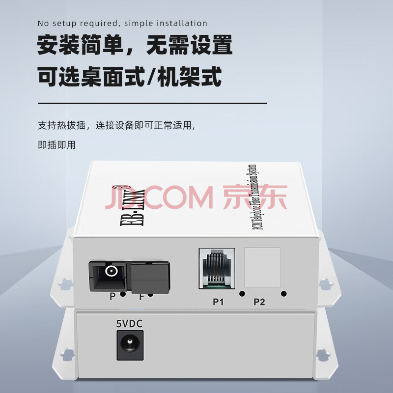 商品相册:EB-LINK 电话光端机1路电话PCM语音光端机音频对讲收发器电话光纤转换器大方口SC接口第
