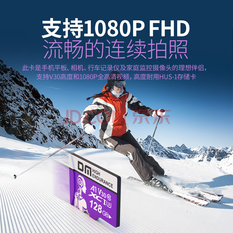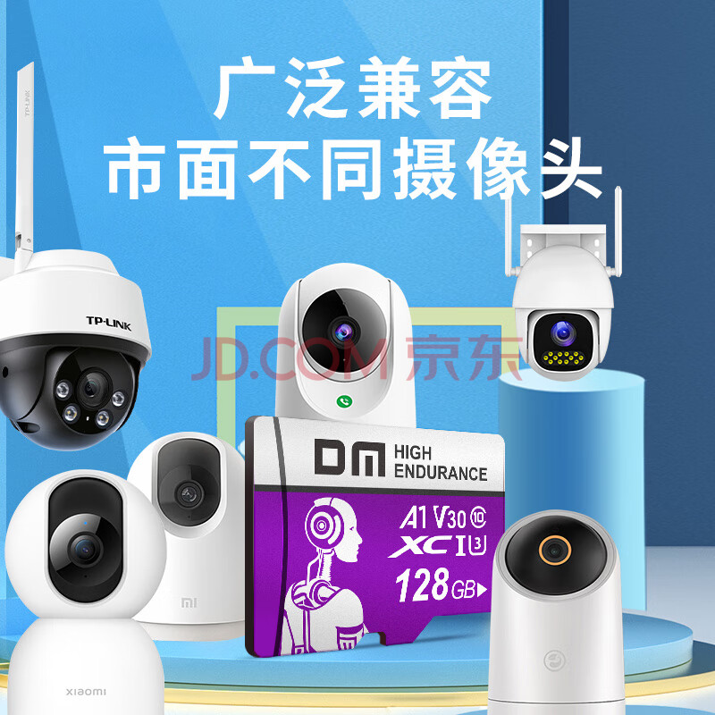 商品相册:DM大迈 128GB TF(MicroSD)存储卡 紫卡 C10监控安防摄像头专用极速内存卡适用华为小米萤石普联360第