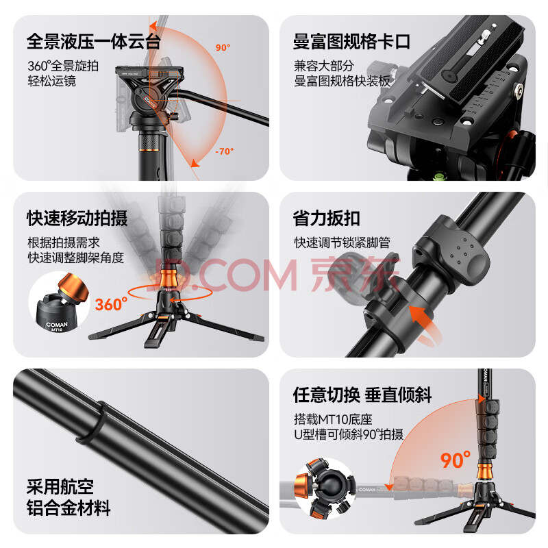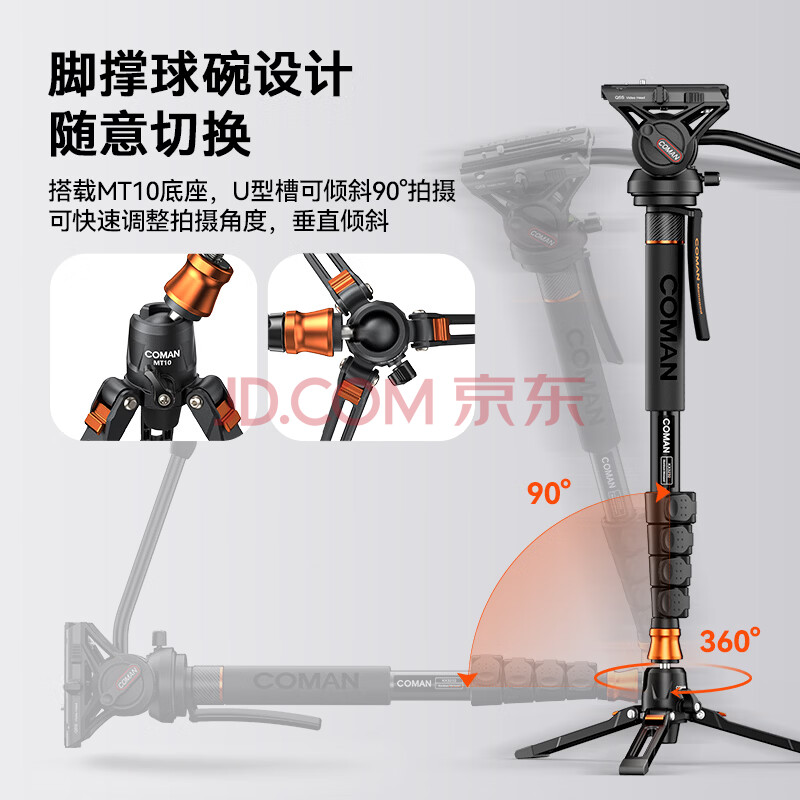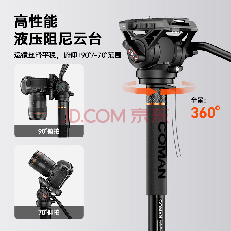 商品相册:科漫(COMAN)独脚架单反摄像机碳纤维独脚架支架专业摄像机单脚架液压阻尼云台摄影三脚架相机支架KX3535第