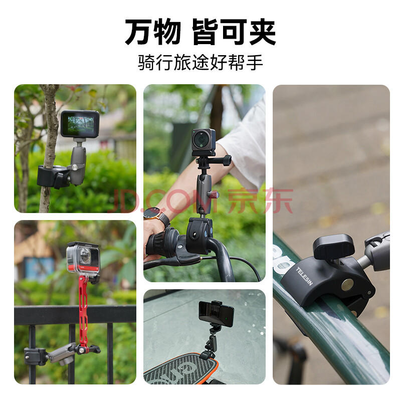 商品相册:TELESIN(泰迅)适配大疆action5pro/6/4摩托车支架nano车管夹acepro2 X5自行车固定支架gopro运动相机配件第