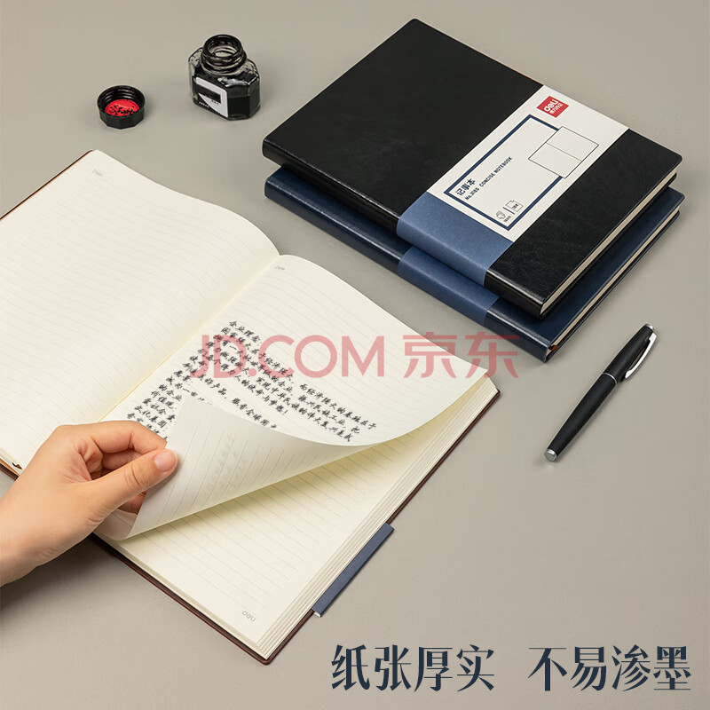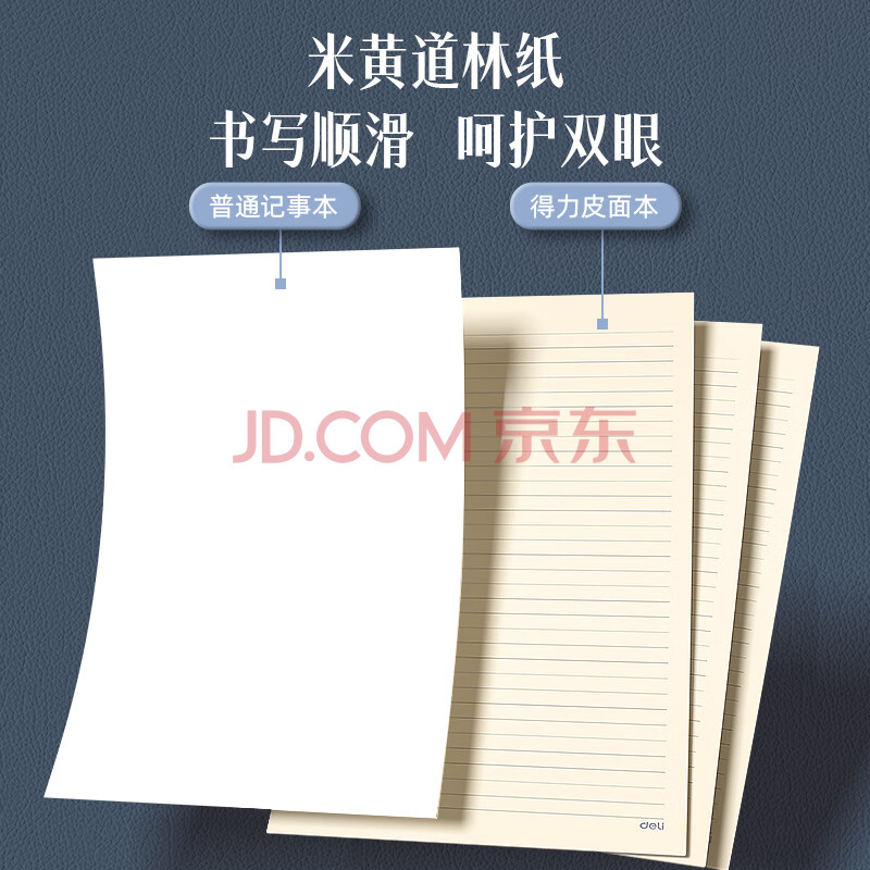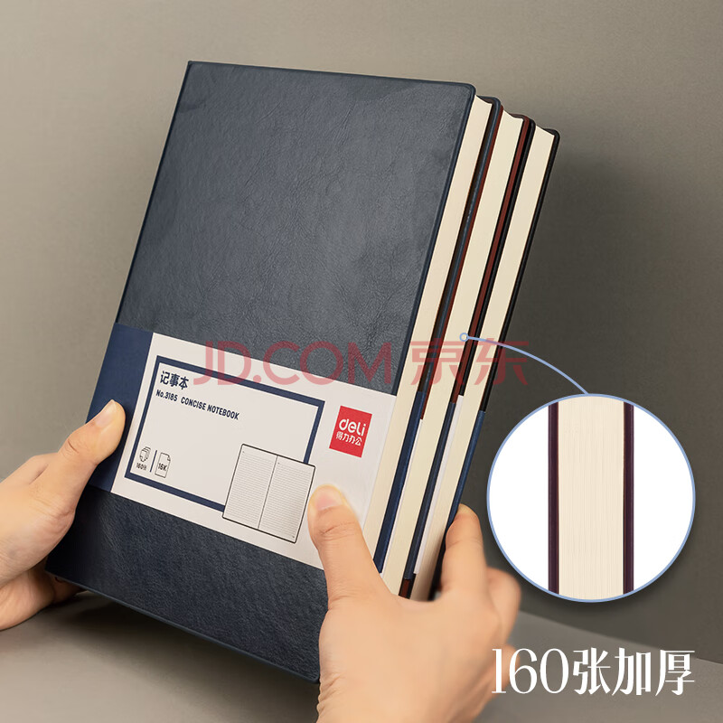 商品相册:得力(deli)可定制皮面本16K160张笔记本加厚商务皮面本办公用品会议记事本日记本子 蓝色3185第