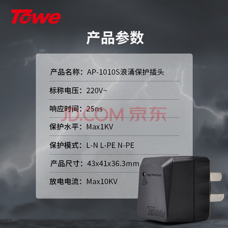 商品相册:TOWE同为(TOWE)防雷防浪涌插头电源转换器插座防雷器保护开关AP-1010S第