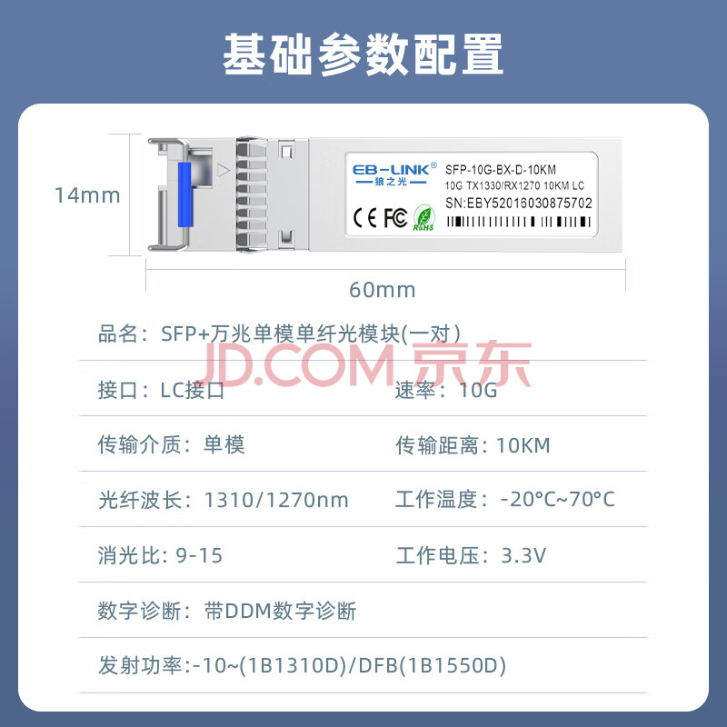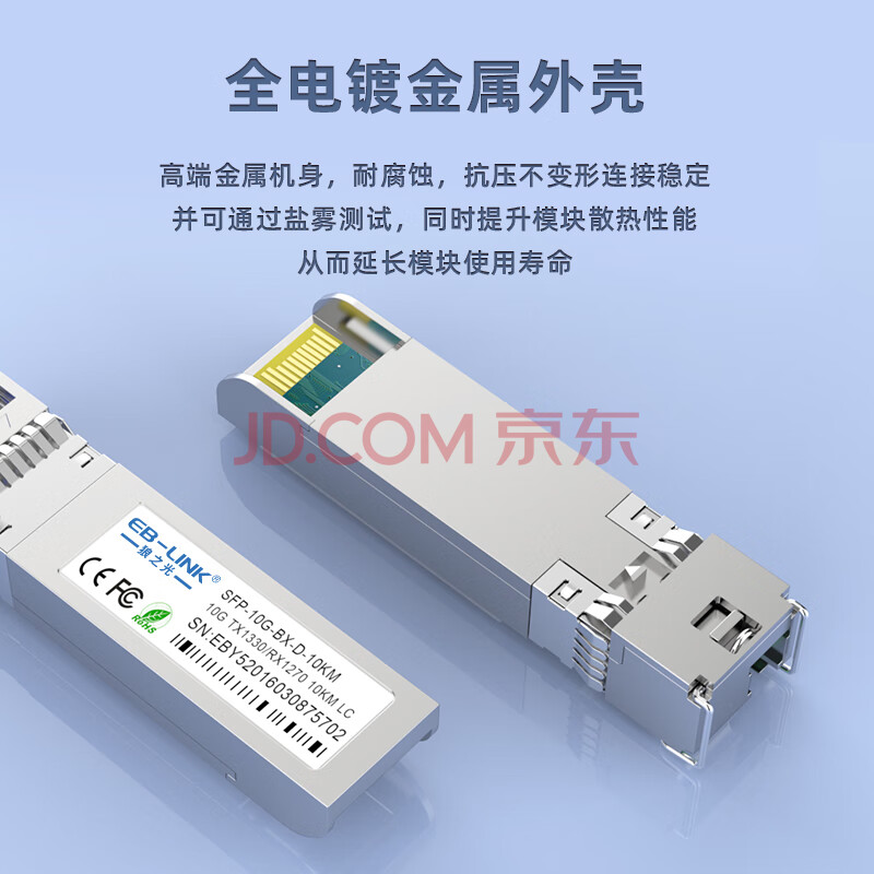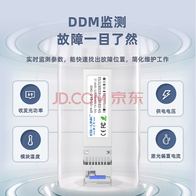 商品相册:EB-LINK SFP-10G-BX-10KM SFP+单模单纤光模块10G万兆单芯10公里带DDM兼容华为第
